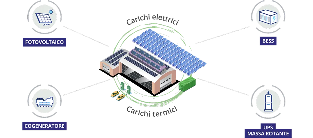 Permette di utilizzare l’energia prodotta in modo coerente con i profili di consumo aziendali, riducendo la dipendenza dalla rete.